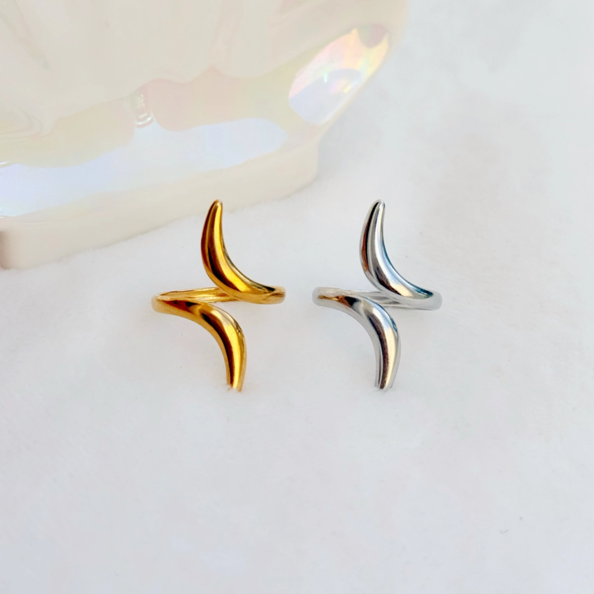 El Anillo Curvas de acero inoxidable combina simplicidad y estilo con un diseño elegante formado por dos líneas curvas que se encuentran en el centro, creando un efecto moderno y estilizado. Su acabado brillante lo convierte en una pieza versátil que se adapta a cualquier outfit, desde lo casual hasta lo más chic.