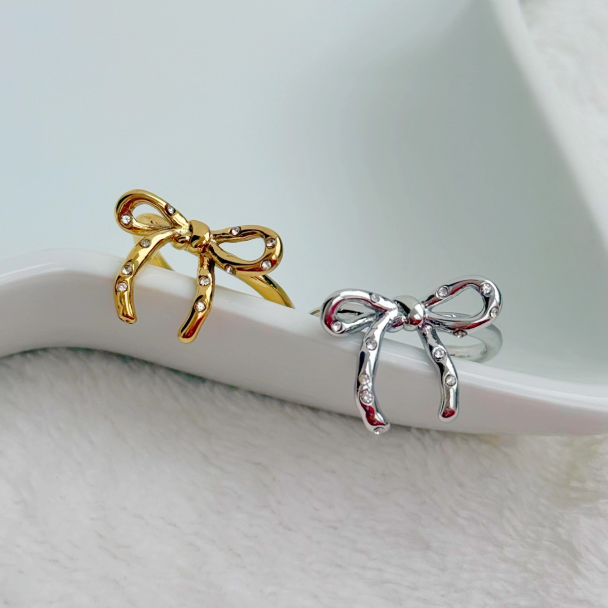 El Anillo Lazo es una pieza delicada y femenina con un diseño inspirado en un lazo delgado adornado con pequeños destellos. Su estilo elegante y moderno lo convierte en el accesorio ideal para quienes aman piezas sutiles pero con un toque especial.