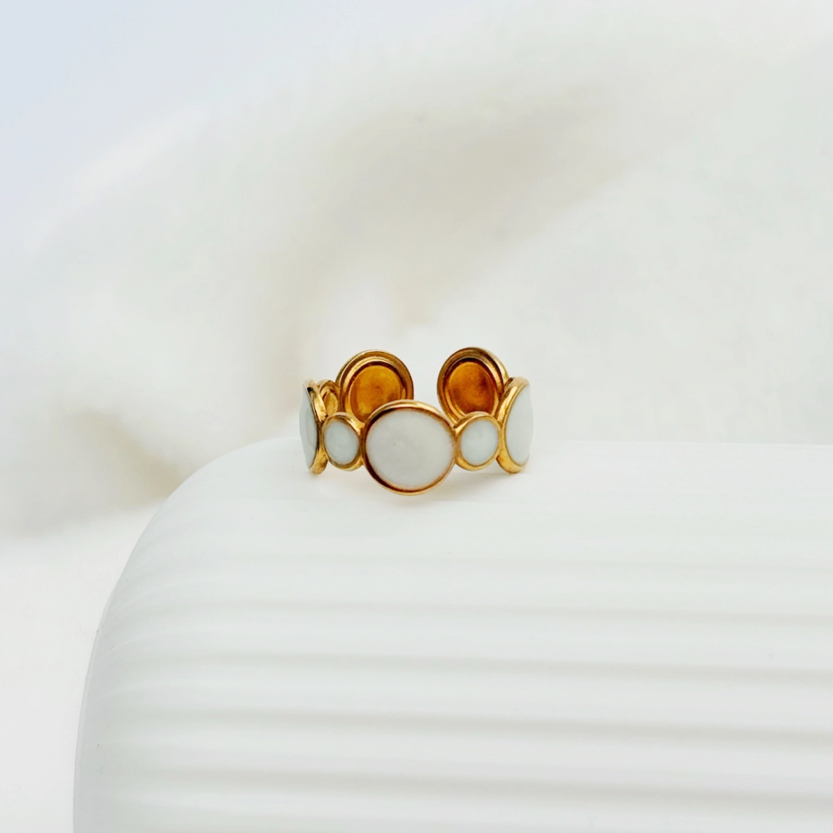El Anillo nieve es una pieza delicada y elegante, diseñada con pequeños círculos blancos que evocan la suavidad y brillo de la luna. Su estilo femenino y moderno, elaborado completamente en acero inoxidable, lo convierte en un accesorio perfecto para añadir un toque romántico y sofisticado a cualquier look.