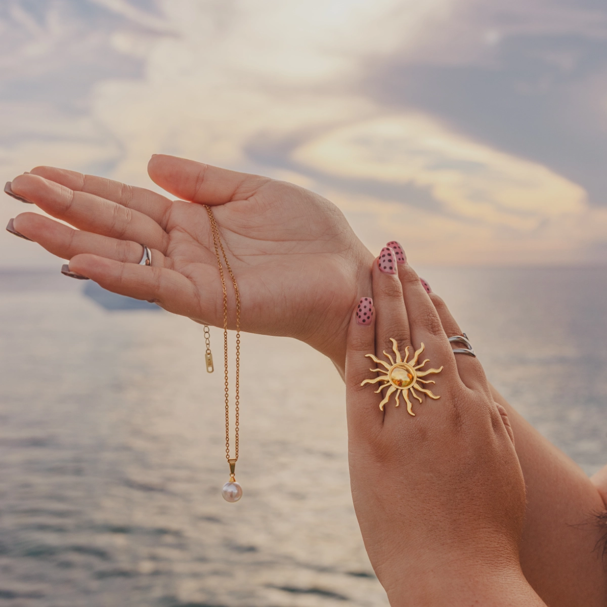 El Anillo Solaris es una pieza protagonista inspirada en la energía y el resplandor del sol. Sus rayos ondulados crean un efecto dinámico y elegante, aportando brillo y presencia a cualquier look.
