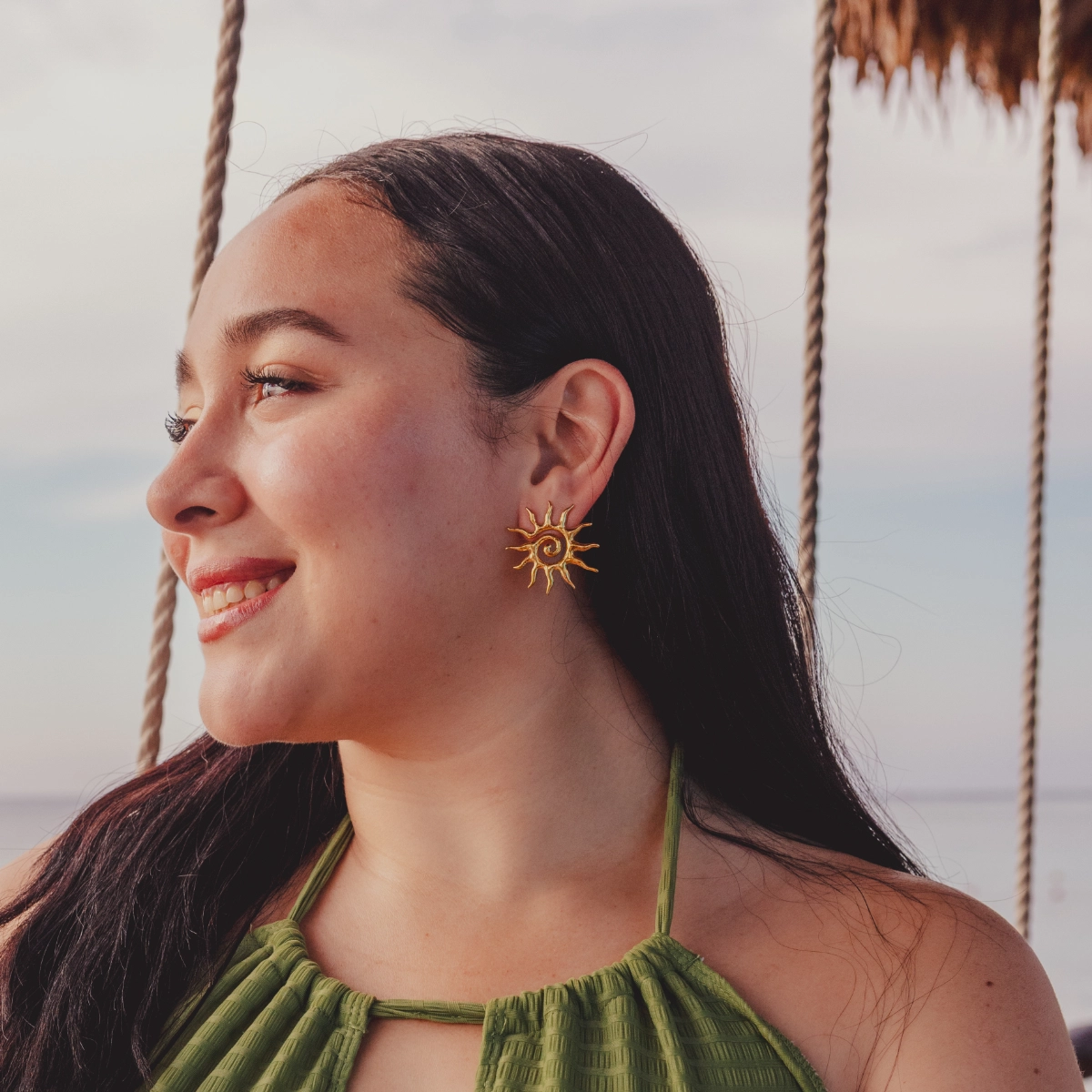 Los Aretes Sol Mística destacan por su diseño artístico en forma de sol espiralado, que simboliza energía, luz y renovación.