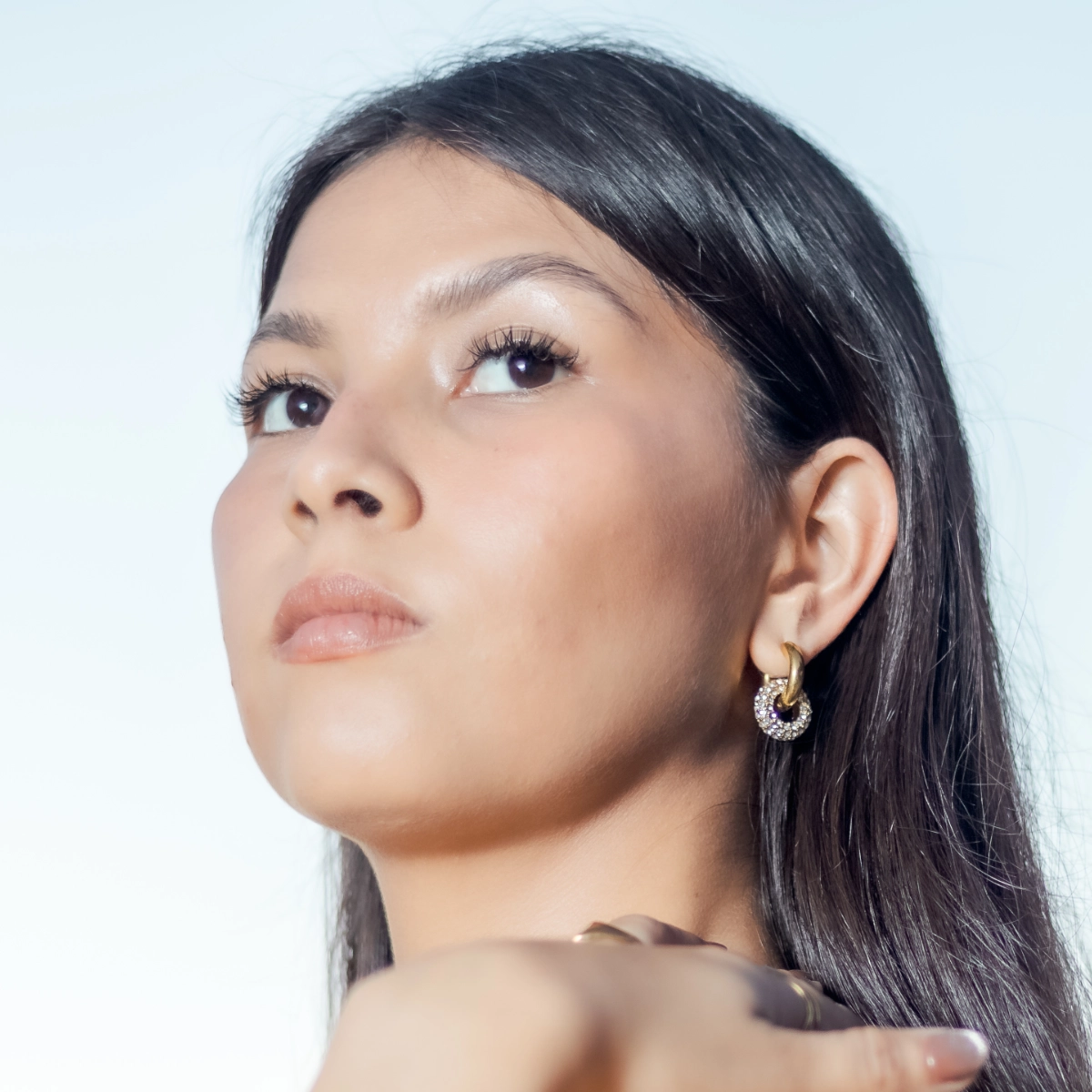 Las Arracadas Marina son el equilibrio perfecto entre brillo, elegancia y frescura. Su diseño en forma de nudo doble, engalanado con piedras de zirconia crea un efecto luminoso que recuerda el destello del sol reflejándose en el mar.