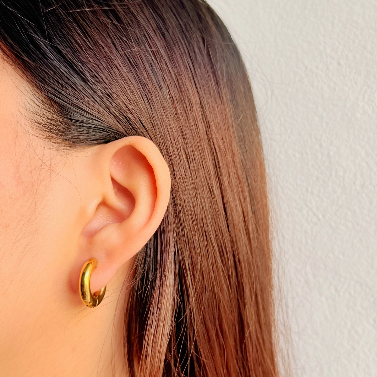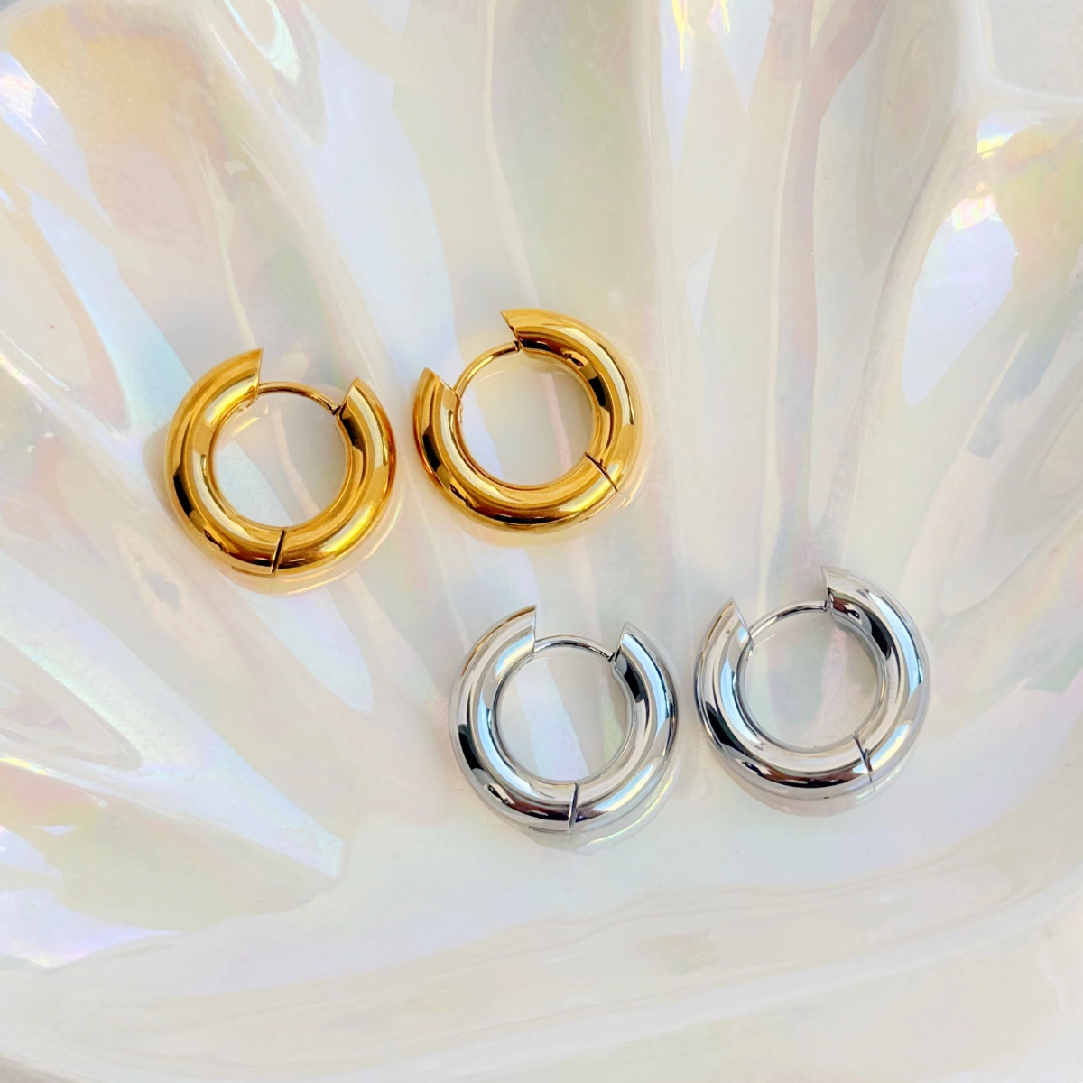 Las Arracadas Selena destacan por su diseño clásico y pulido, con un acabado brillante que refleja la luz de manera espectacular. Su forma redondeada y minimalista las convierte en una pieza versátil, perfecta para usar todos los días o para elevar un outfit especial.