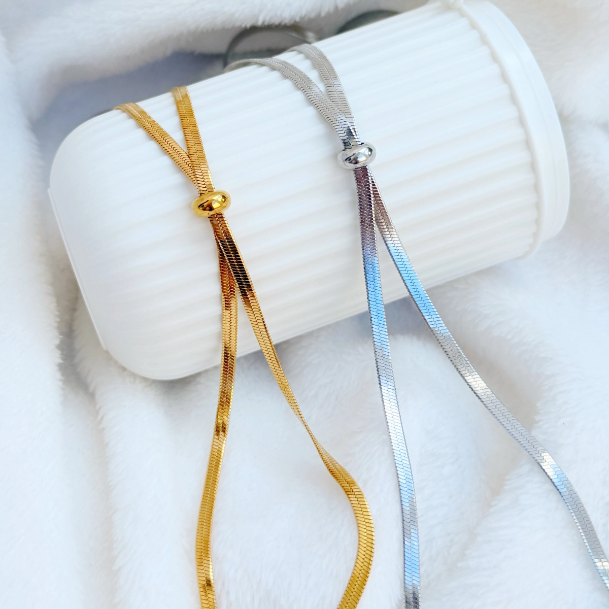 El Collar Atenea es una pieza imponente que combina elegancia y carácter. Su diseño de cadena tipo serpiente crea una caída sofisticada que realza cualquier look. Tiene dos formas de uso.