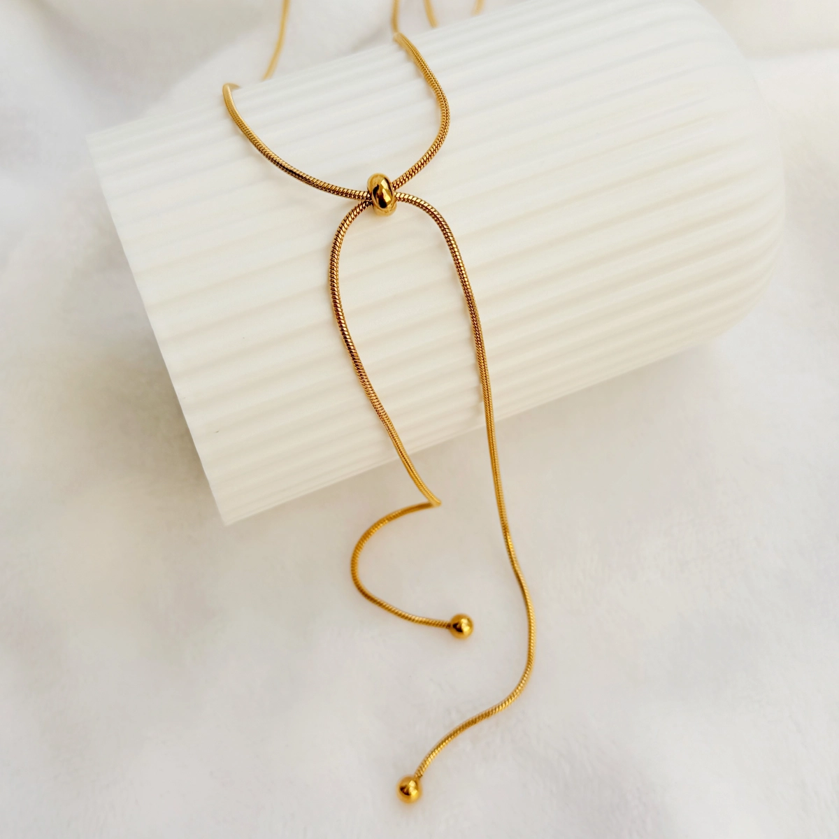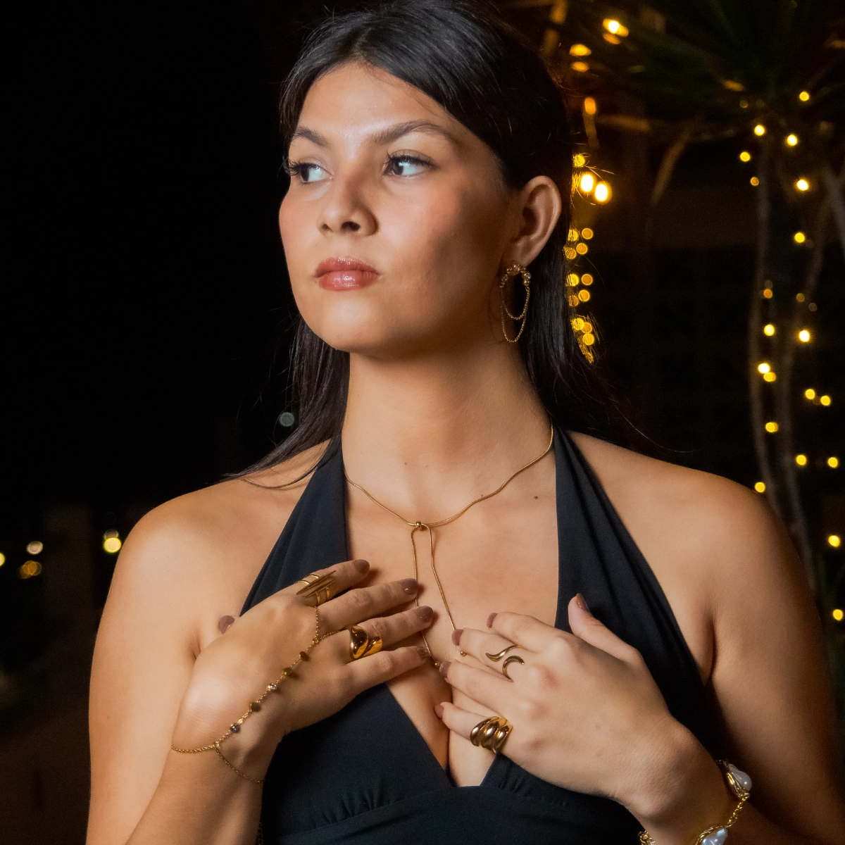 El Collar Beca es una pieza que destaca por su elegancia sutil y su diseño moderno. Su caída delicada y su detalle alargado crean un efecto sofisticado que estiliza el cuello y aporta un toque chic a cualquier outfit, desde looks casuales hasta combinaciones más formales.