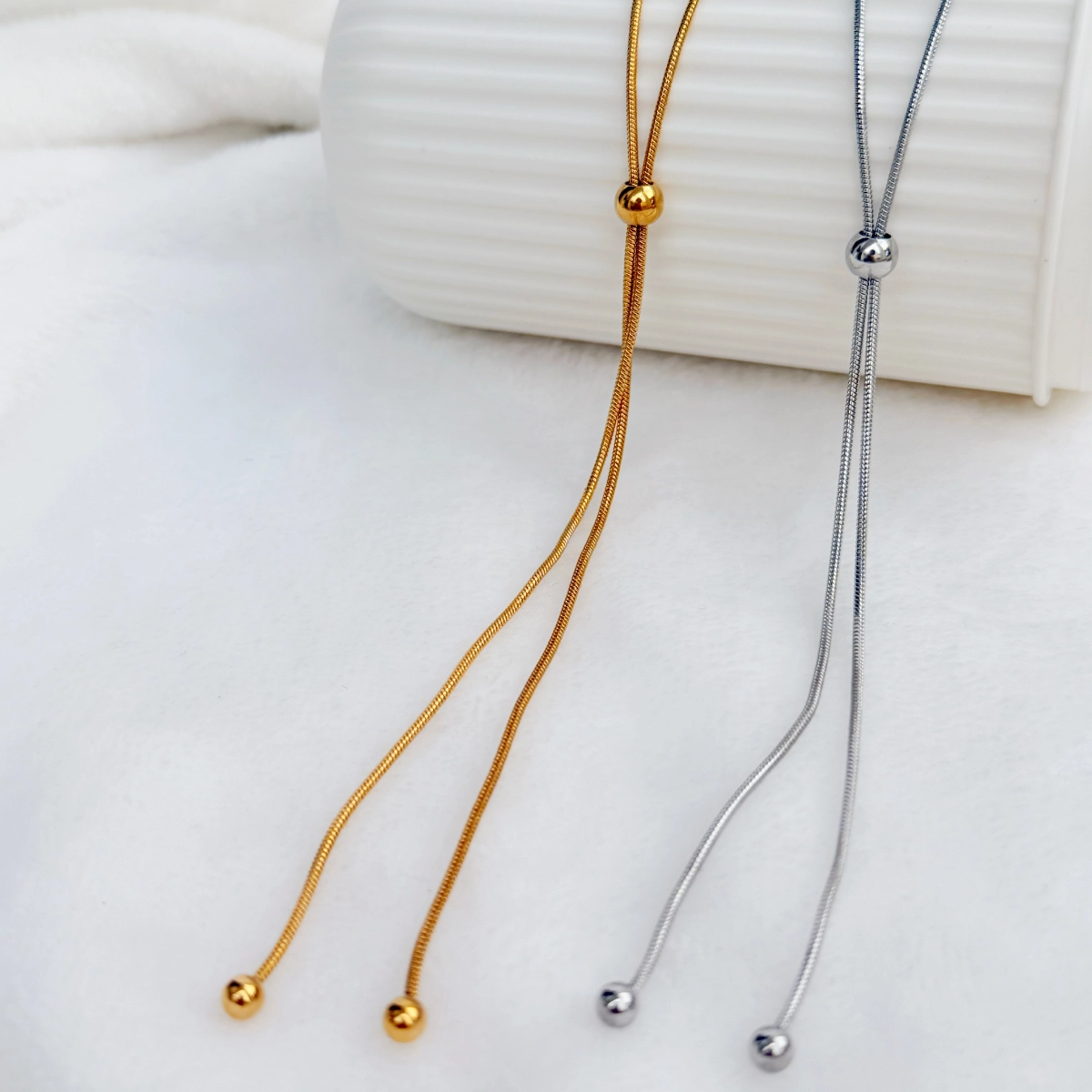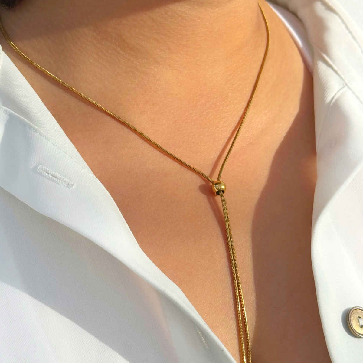 El Collar Iris tiene un diseño ajustable permite adaptarlo a distintos estilos: corto, largo siempre con un acabado delicado y moderno.